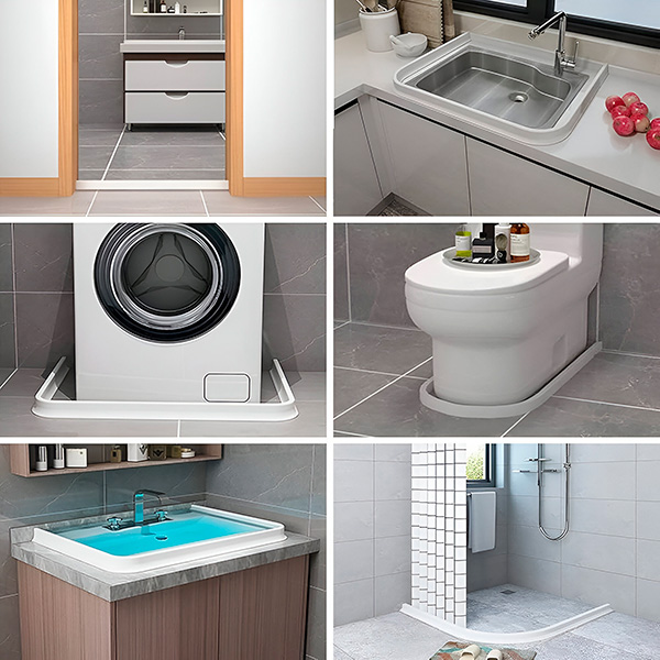 Uma tira resolve vários problemas de água em casa. Use no duche para conter salpicos, no lava-loiça da cozinha para evitar salpicos na bancada ou à volta da banheira para proteger o chão da casa de banho.