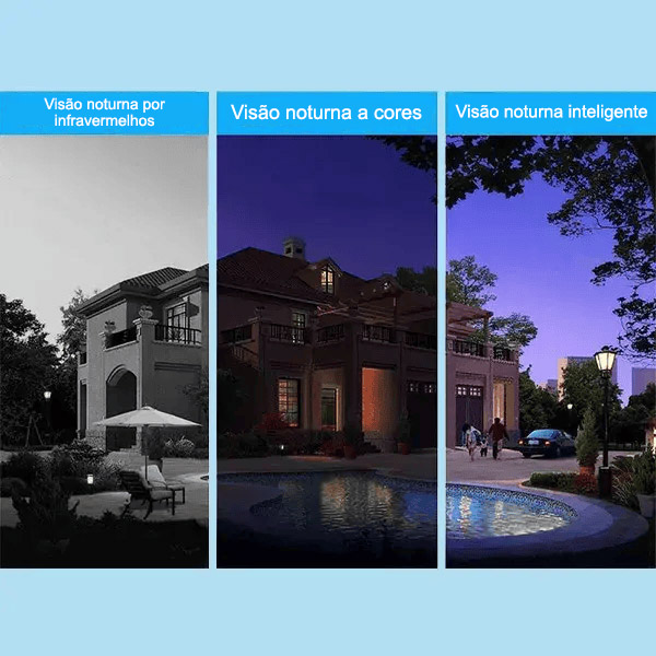 A câmara possui três luzes grandes-angulares infravermelhas e quatro luzes LED brilhantes, que permitem capturar vídeos a cores tanto de dia quanto de noite.