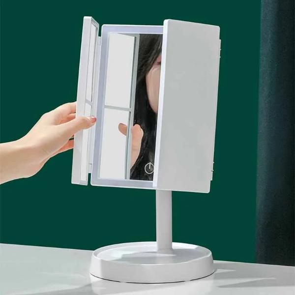 🔍 Вижте всеки детайл ясно – вградени увеличителни панели 2x и 3x за прецизно нанасяне на очна линия, оформяне на вежди и мигли.🔋 Без смяна на батерии, никога – презареждащо се чрез USB с включен кабел; 4 x AAA батерии по избор като резерва – работи навсякъде, дори без контакт.
