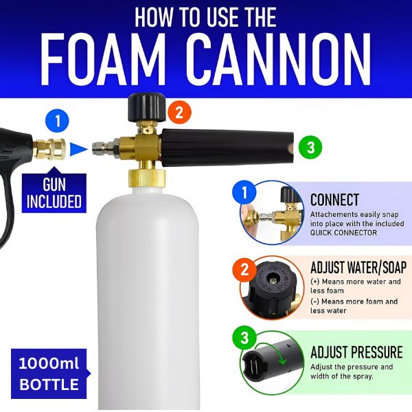1 x Pistola de espuma para lavagem de automóveis de alta pressão FOAMSTER