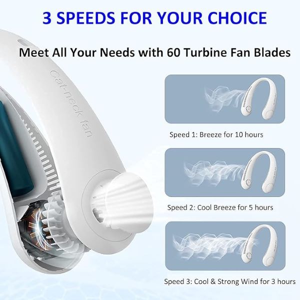 A ventoinha proporciona uma experiência sem mãos e prática, simplesmente tem de colocar ao pescoço. Este dispositivo vai mantê-lo fresco e refrescado durante os dias e as noites quentes.